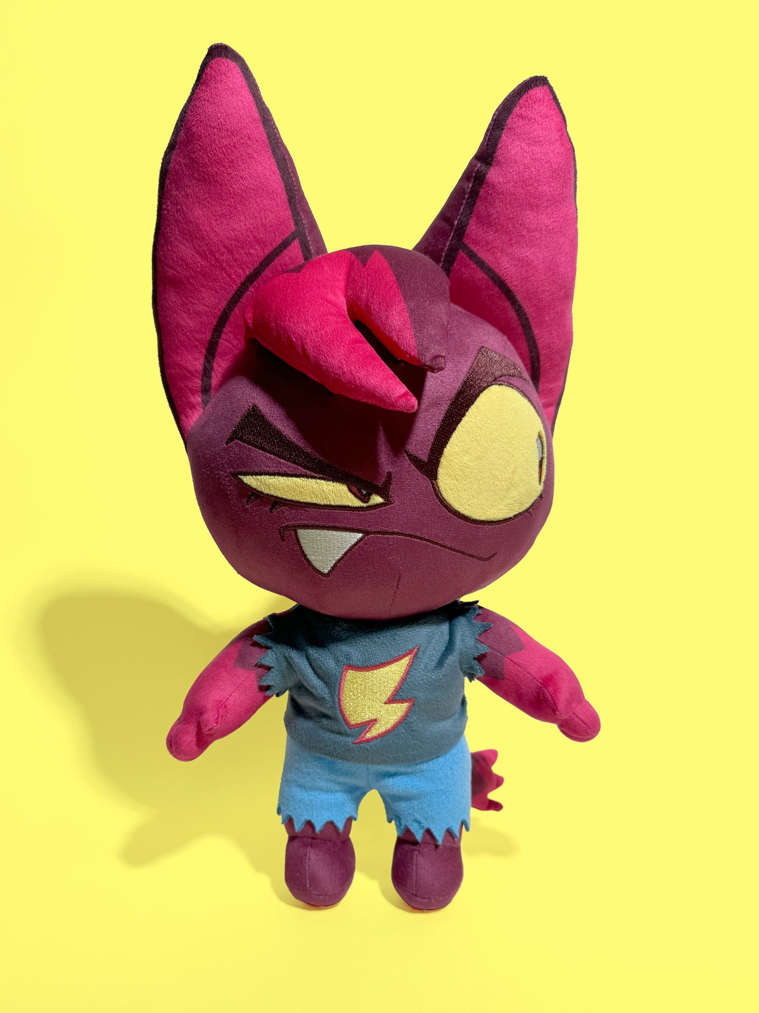 Get out of her way!! Oops, I meant to say... GET THE HELL OUT OF HER WAY!!! This Mars plush measures seventeen inches tall, just like Achilles—though her attitude is several times larger. Don't let her soft minky coat fool you, she's a surprisingly robust creature capable of smacking around her black-and-blue counterpart... or just glaring him down with her intimidating embroidered side-eye. All markings are accurate to the comic, and she arrives dressed in her standard outfit: black t-shirt with a lightning-bolt detail and cut-off shorts.